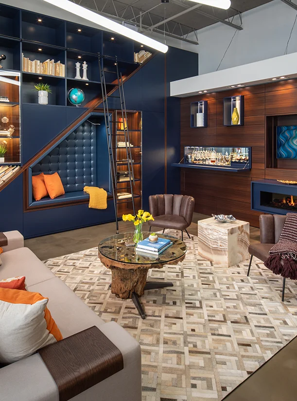 These systems make great open storage solutions. Easily designed to work around your space limitations. The display areas are textured and subtly lighted to let creativity flow.