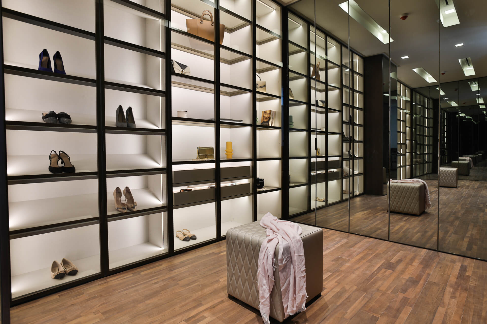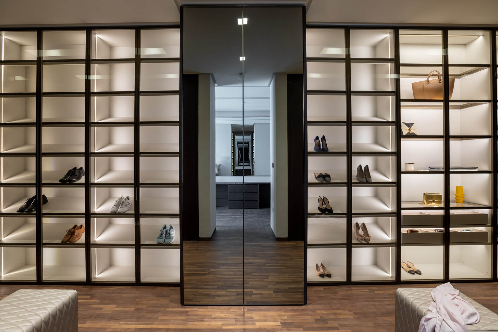 In this private Dubai residence, Schmalenbach delivers a walk-in closet defined by clarity, precision and personalisation. Developed in collaboration with Al Gurg Living, the space is tailored entirely to the client’s lifestyle, combining mirrored cabinetry, glass-fronted shelving and integrated lighting to create a refined and highly functional environment.